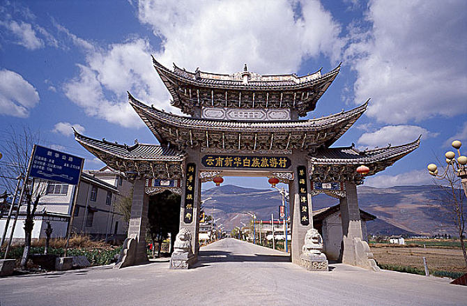 新華村位于大理州鶴慶縣西北部鳳凰山腳下,一個集田園風光、民居、民俗和民族手工藝品生產加工為一體的白族村寨,符合農業(yè)觀光定義分類中的觀光副業(yè)(與農業(yè)相關的具有地方特色的工藝品及其加工制作過程)。新華村依山旁水,是依原生態(tài)自然村落建成的文化旅游區(qū),轄區(qū)有1166戶,海拔在2000―2300米之間,位于鶴慶縣城西北部,距麗江39公里,白族占總人98.5%,是一個典型的白族寨子。2001年,新華村因其悠久的手工藝文化、獨特的民風民俗及優(yōu)美的田園風光被國家文化部、中國村社發(fā)展促進會分別命名為"中國民間藝術之鄉(xiāng)"和"中國民俗文化村",2006年,新華村又榮獲"云南十大名鎮(zhèn)"的稱號。新華村的"小爐匠"自唐代南詔國時期就開始加工金銀銅等金屬手工藝品,至今已有一千多年的歷史。新華村兼有優(yōu)美的自然景觀,周圍山水交相輝映,地下水儲量豐富,行政區(qū)境內的萬畝草海濕地和清澈甘醇的農家泉眼。獨具地方民族特色的建筑風格,豐富清澈的水域,既不乏江南水鄉(xiāng)的柔美,更具有高原獨特的水鄉(xiāng)情結。2009年12月28日,國家旅游局正式批準"銀都水鄉(xiāng)"新華村為國家4A級旅游行政區(qū)。