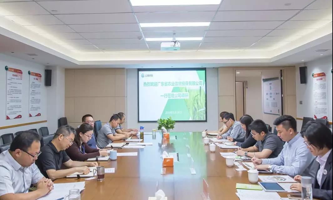 5月16日,廣東省農(nóng)擔公司監(jiān)事張書苑率隊赴云南省農(nóng)擔公司調(diào)研交流。受郭影董事長委托,公司監(jiān)事長高逢旸、副總經(jīng)理廖寅皓、敖成碧率農(nóng)擔一部、二部、綜合部、財務(wù)部、風控部、機構(gòu)部及內(nèi)審部與廣東省農(nóng)擔公司進行了座談交流。