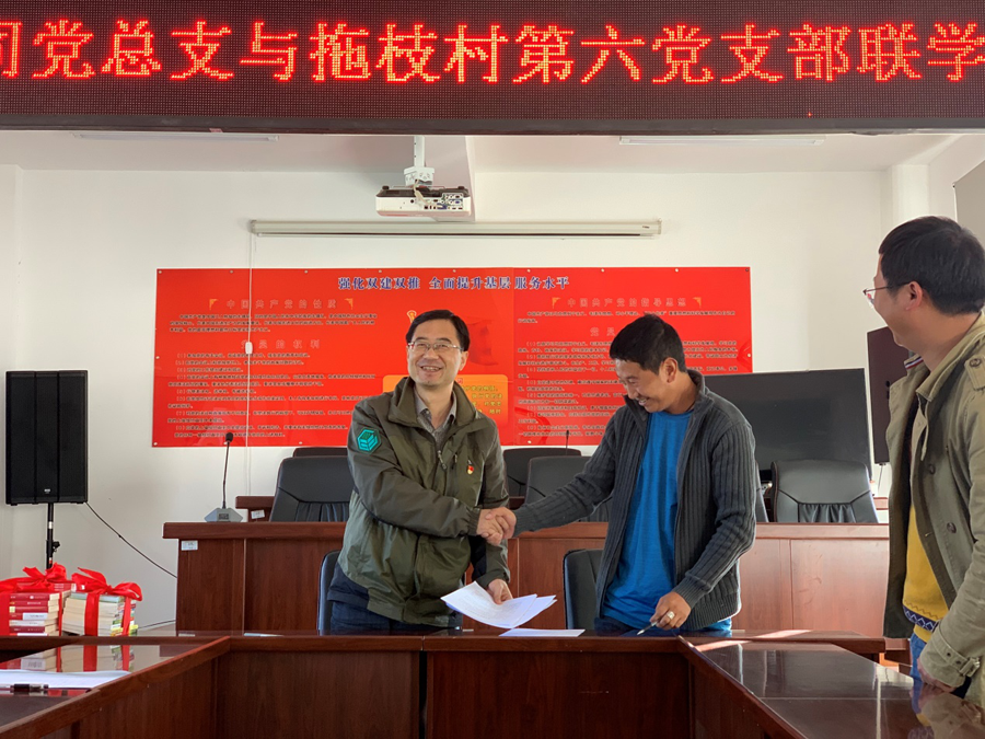支部結(jié)對(duì)雙促進(jìn),共建共享強(qiáng)黨建。自公司黨組織成立以來(lái),嚴(yán)格按照省財(cái)政廳機(jī)關(guān)黨委扶貧工作要求,農(nóng)擔(dān)公司黨(總)支部與永春鄉(xiāng)拖枝村第六黨支部開展了支部共建“雙一雙”學(xué)習(xí)教育、經(jīng)驗(yàn)交流,10月22日公司黨總支書記郭影與拖枝村第六簽訂了黨支部結(jié)對(duì)共建協(xié)議書,并捐贈(zèng)黨建和農(nóng)業(yè)科技方面讀書,把黨建工作與精準(zhǔn)扶貧工作相結(jié)合,充分發(fā)揮農(nóng)擔(dān)公司黨組織全心支農(nóng)、為農(nóng)、惠農(nóng)、不脫農(nóng)的先鋒模范作用,以黨建推動(dòng)脫貧攻堅(jiān),以脫貧攻堅(jiān)促進(jìn)支部黨建,促進(jìn)了扶貧工作與黨建工作的良性互動(dòng)。